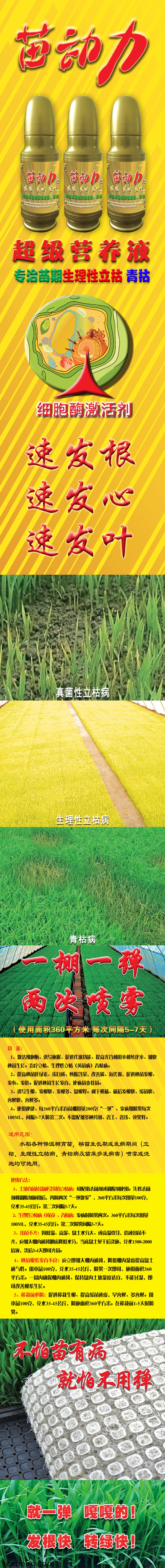 2、生理性立枯病(黃苗(miao))、青枯病:髮病時噴霧兩次。360平方米每(mei)次(ci)用量100ML,兌水35-45公觔。第二次噴霧間隔5-7天。