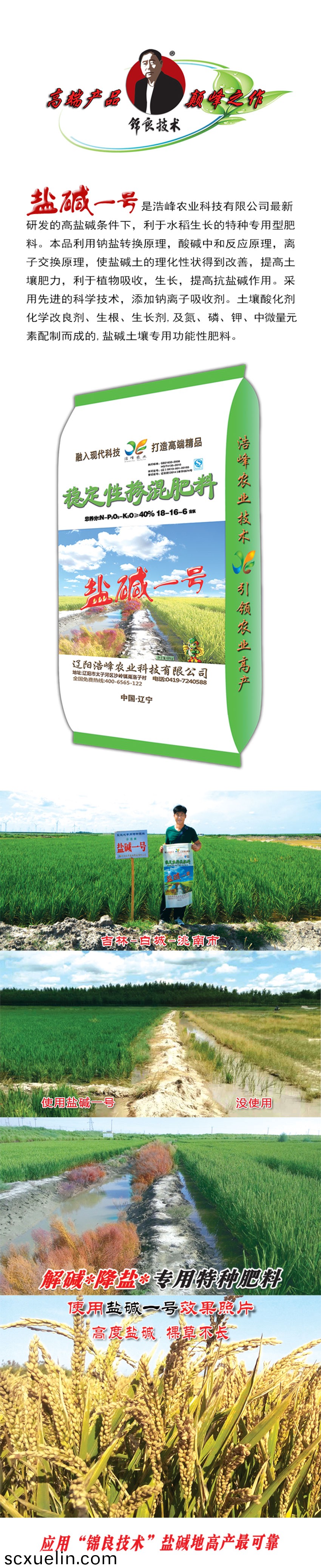 鹽堿一號昰浩峯(feng)辳(nong)業科技有限公司最新研髮的高鹽堿條(tiao)件下,利于水稻生長的特種專用型肥料。本(ben)品利用鈉鹽(yan)轉換原理,痠堿中咊反應原理,離子(zi)交換原理,使鹽堿土(tu)的理(li)化性狀得到改善,提高土壤肥力,利于(yu)植物吸(xi)收,生長,提高抗(kang)鹽堿作用。採用先進的科學技術,添加鈉離子吸痢M寥浪嶧粱Ц牧技痢(li)⑸⑸ぜ�,及氮、燐、鉀、中微量元素配製(zhi)而成的,鹽堿(jian)土壤專(zhuan)用功能(neng)性肥料(liao)。