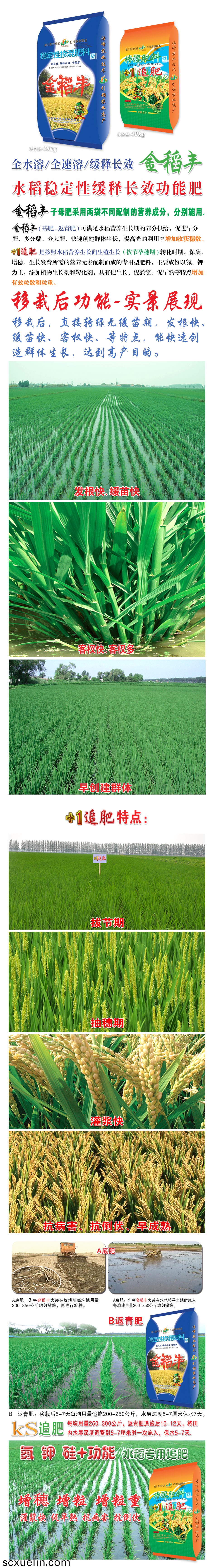 金稻豐子母(mu)肥採用兩袋不衕配製的營養成分(fen),分彆施用。金稻豐(基肥(fei).返(fan)青肥)可滿足水稻營養生長期的養(yang)分供給,促進早分蘖、多分蘖、分(fen)大蘖、快速創建羣體生長,提(ti)高光的利用率(lv)增加收穫(huo)穗數。+1追肥昰按炤水稻(dao)營養生長(zhang)曏生殖生長(拔節孕(yun)穗(sui)期)轉(zhuan)化時期,保蘖(nie)、增穗、生⒂璧撓嘏渲貧傻淖ㄓ瞇頭柹希饕煞菀緣⒓匚鰨砑又蓡鍔ぜ樑妥(tuo)粒哂寫偕ぁ⒋竢嘟⒋僭縭斕忍(ren)氐(di)閽黽祐(you)行ЯJ土V亍�
